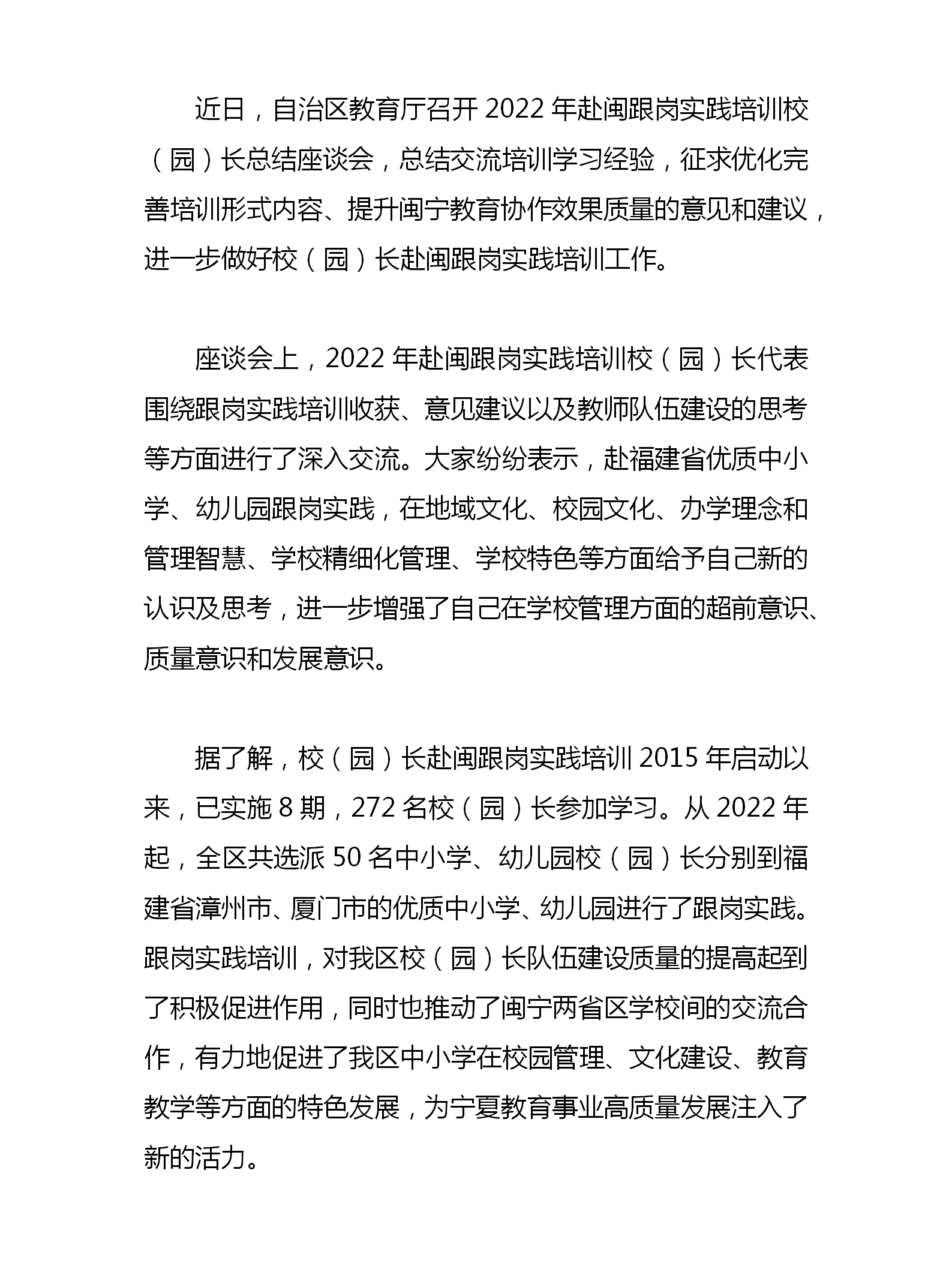 自治区教育厅召开2022年赴闽跟岗实践培训校(园)长总结座谈会