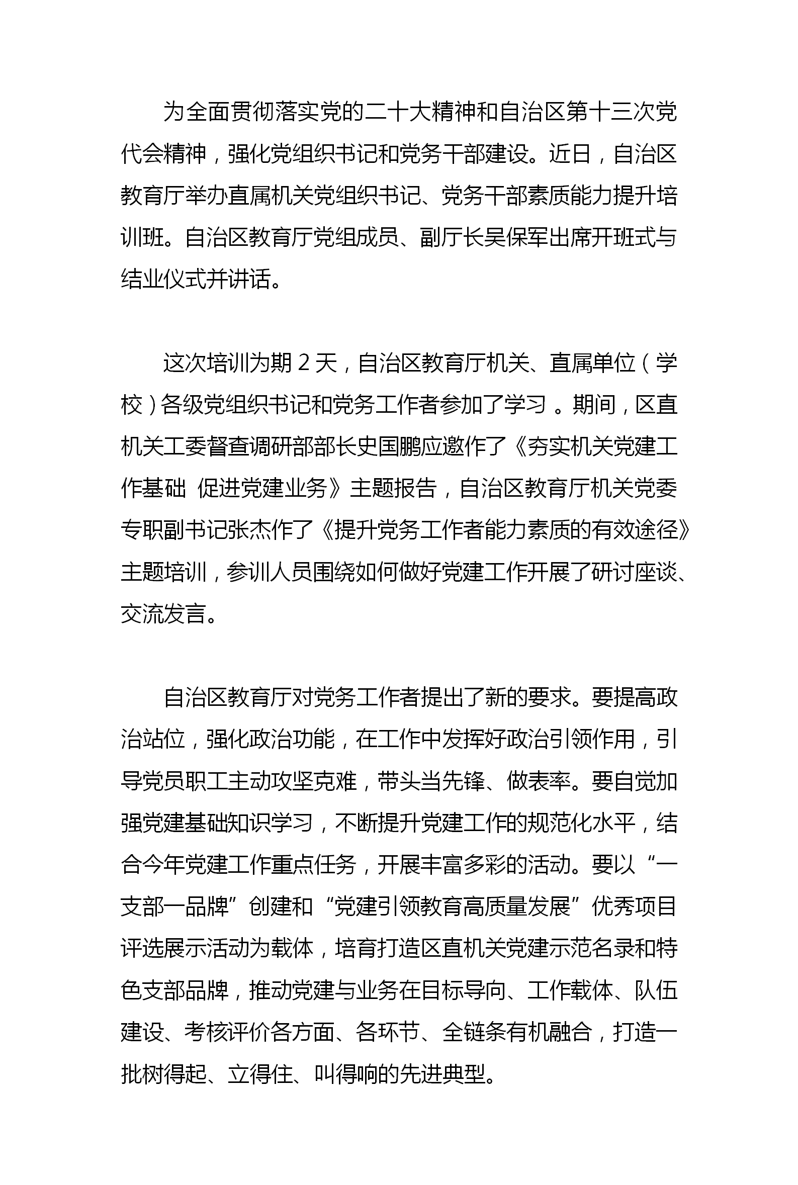 自治区教育厅举办直属机关党组织书记、党务干部素质能力提升培训班