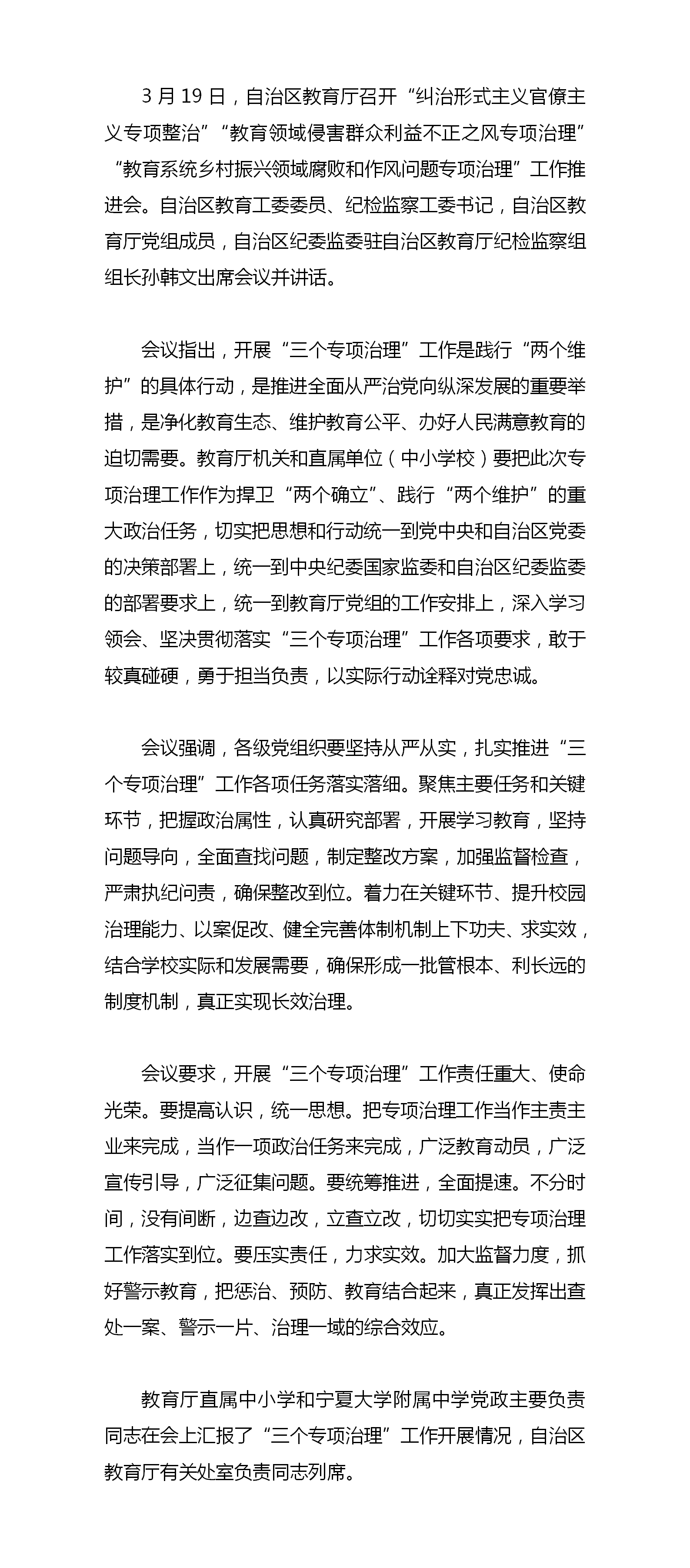 自治区教育厅召开“三个专项治理”工作推进会
