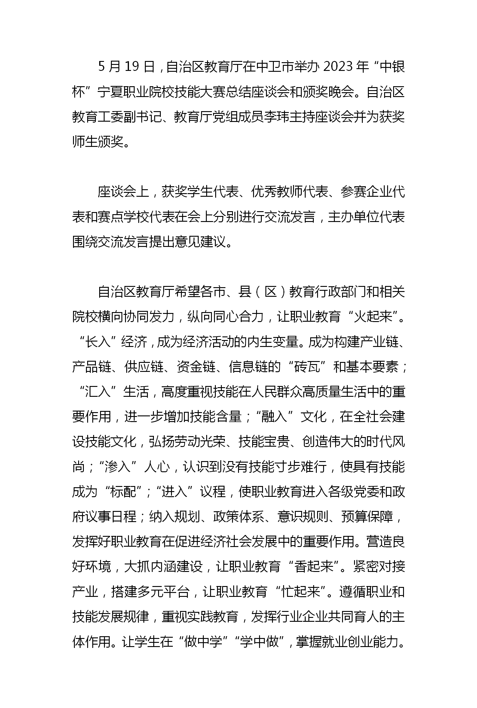 2023年“中银杯”宁夏职业院校技能大赛总结座谈会和颁奖晚会在中卫市举办
