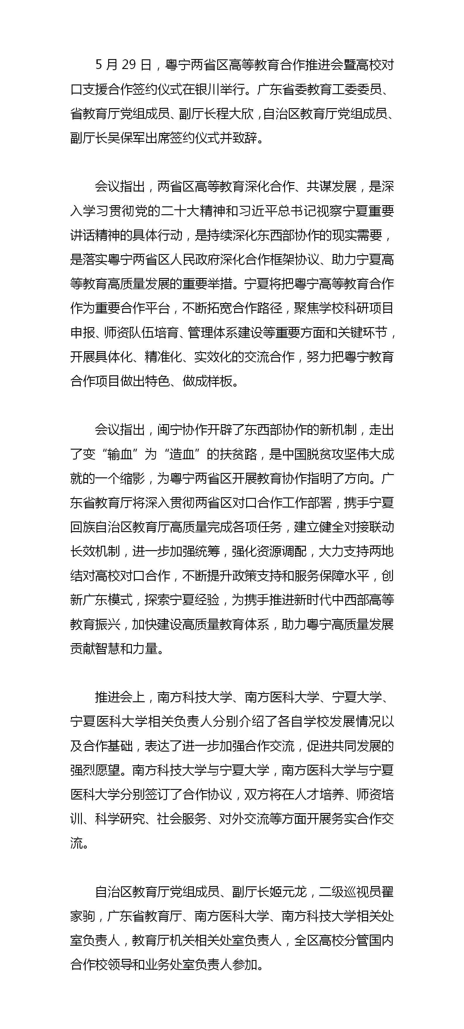 粤宁两省区高等教育合作推进会暨高校对口支援合作签约仪式举行