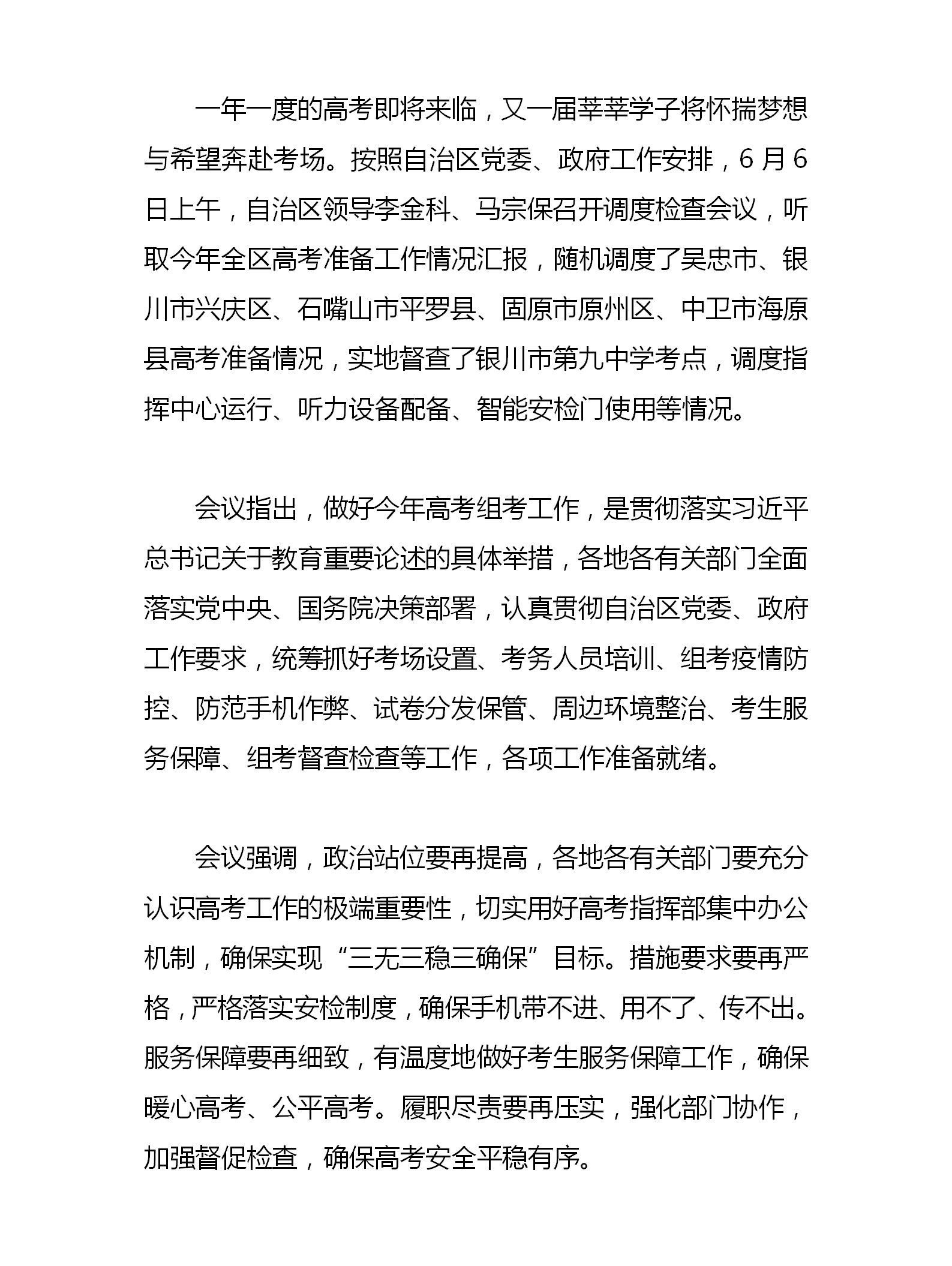 自治区领导调度检查2023年全区高考准备工作