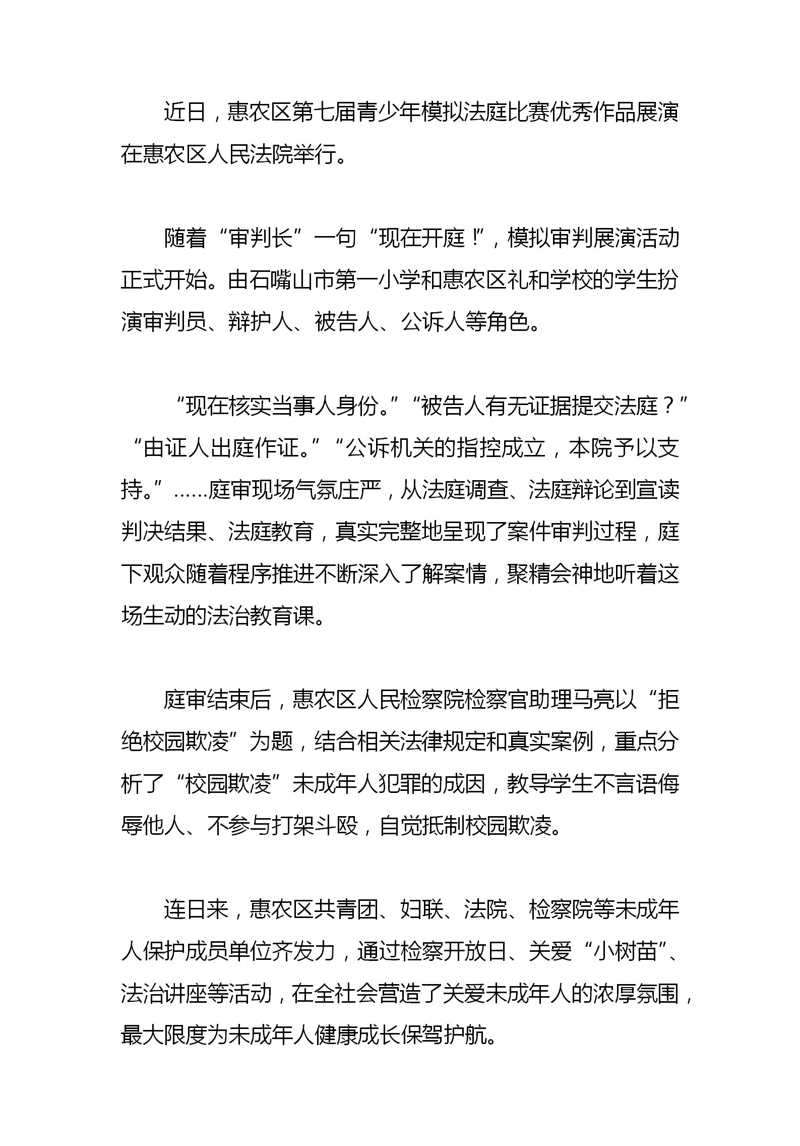 惠农区少年版模拟法庭“开庭”