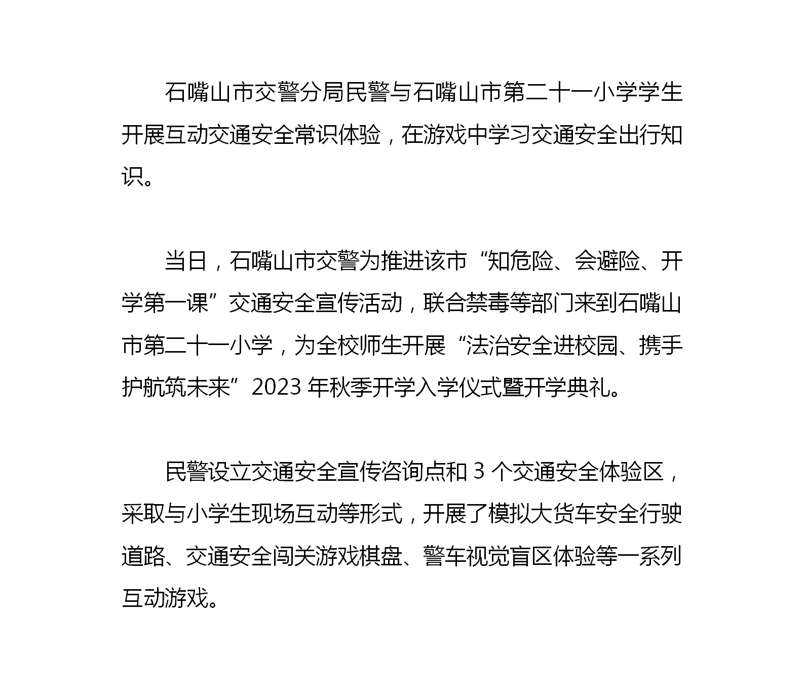 石嘴山市交警与小学生互动游戏 开展“开学第一课”宣传体验活动