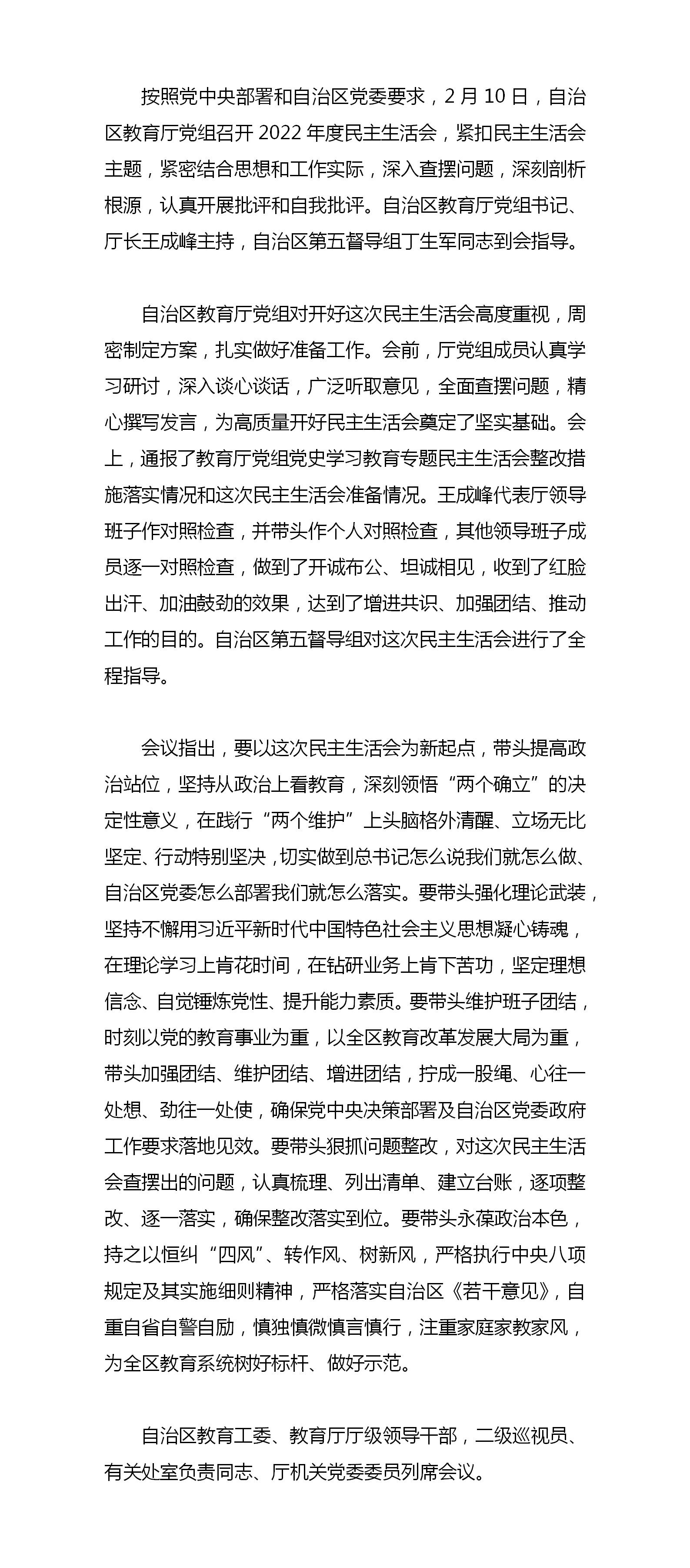 自治区教育厅党组召开2022年度民主生活会