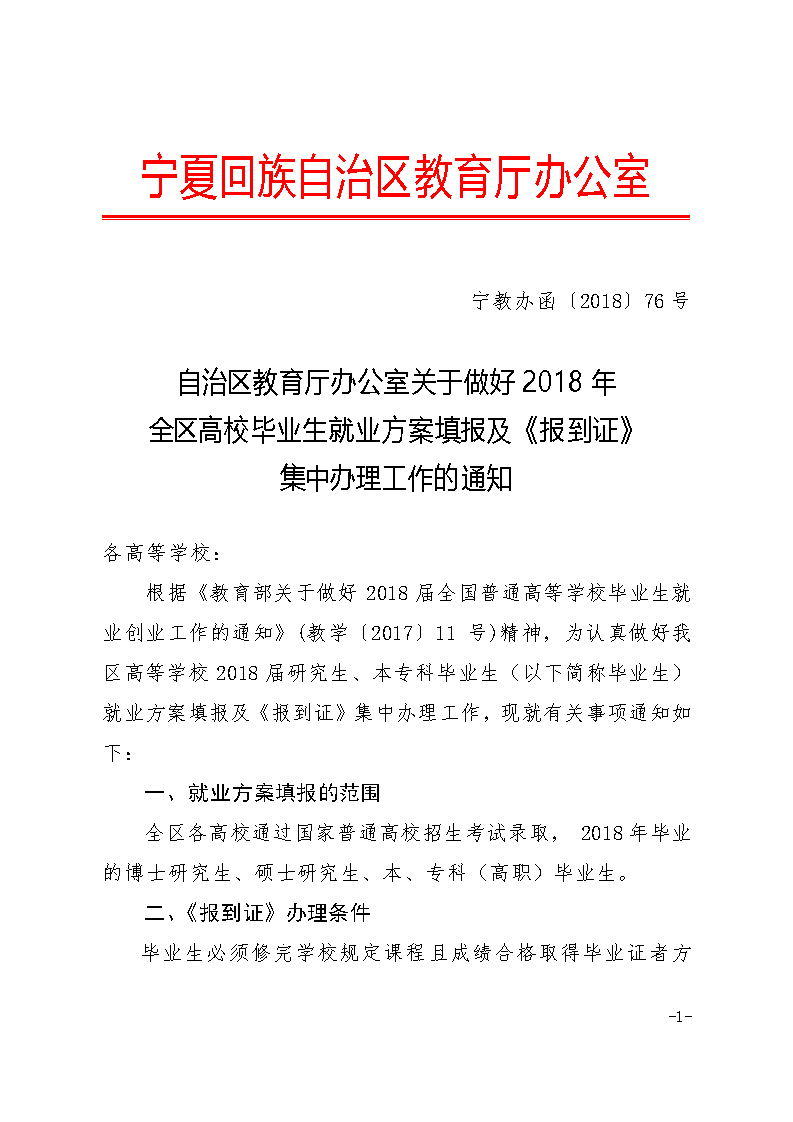 自治区教育厅办公室关于做好2018年全区高校毕业生就业方案填报及《报到证》集中办理工作的通知