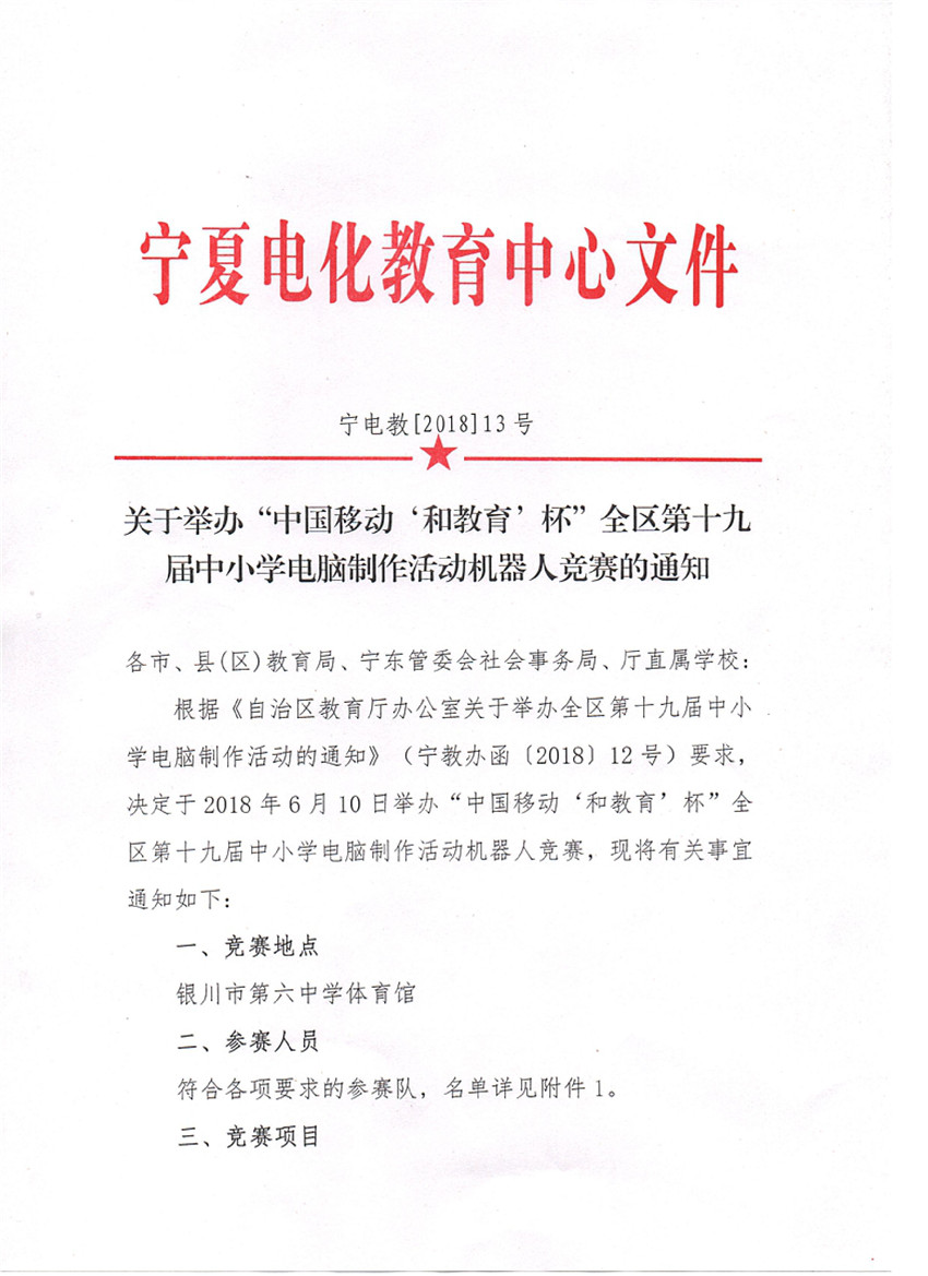 关于举办“中国移动‘和教育’杯”全区第十九届中小学电脑制作活动机器人竞赛的通知