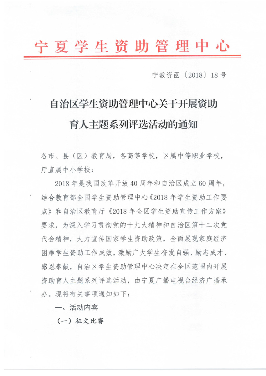 自治区学生资助管理中心关于开展资助育人主题系列评选活动的通知