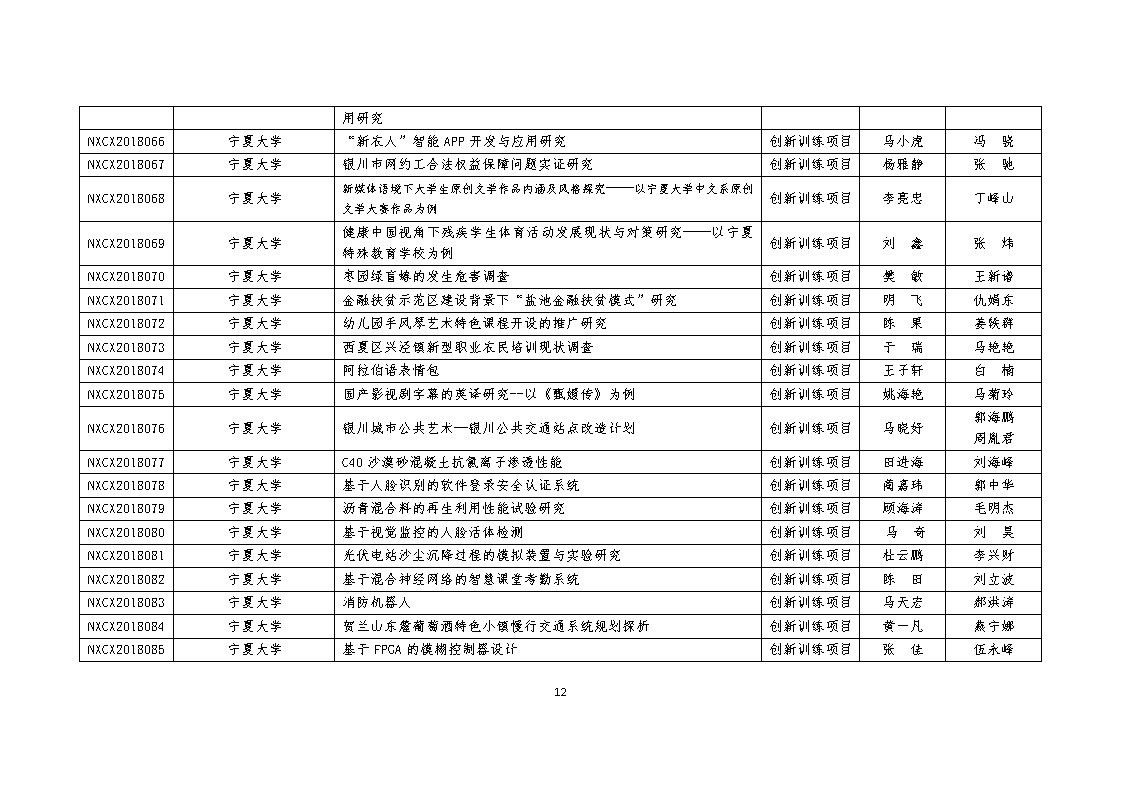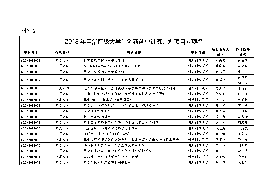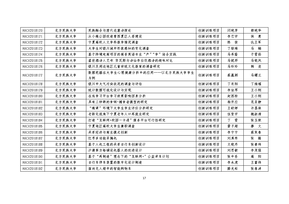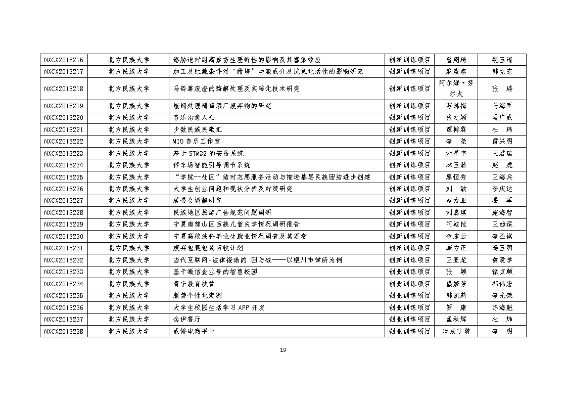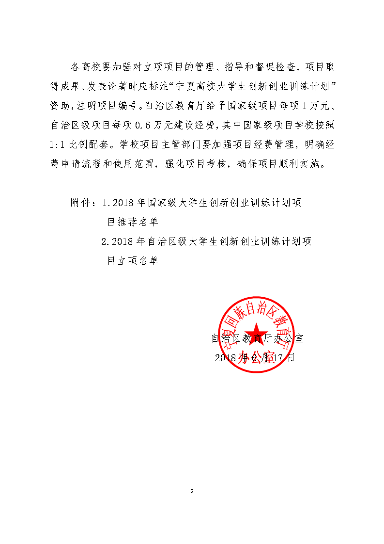 自治区教育厅办公室关于公布2018年大学生创新创业训练计划项目名单的通知