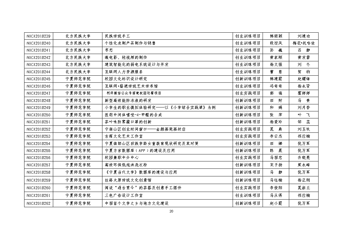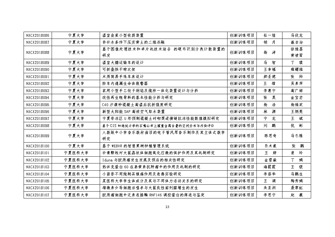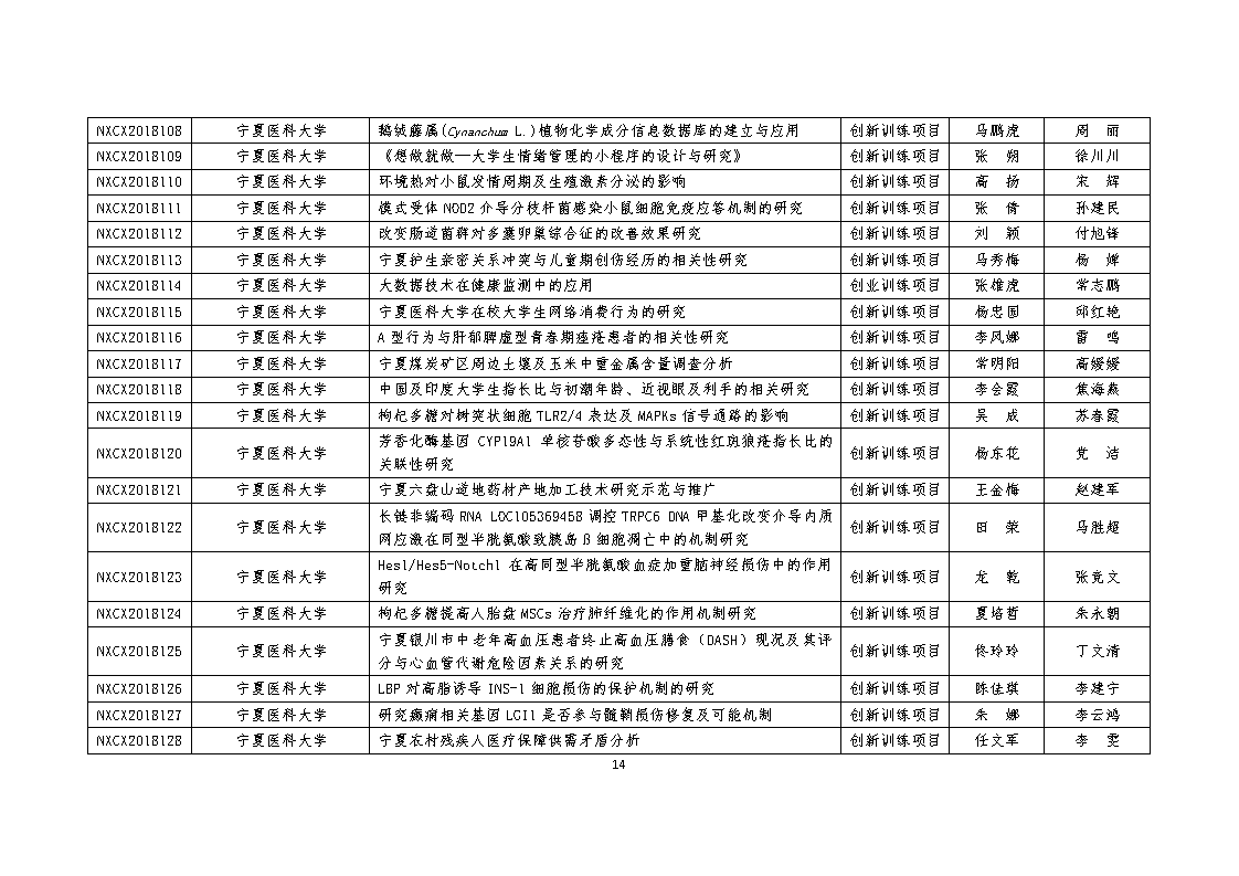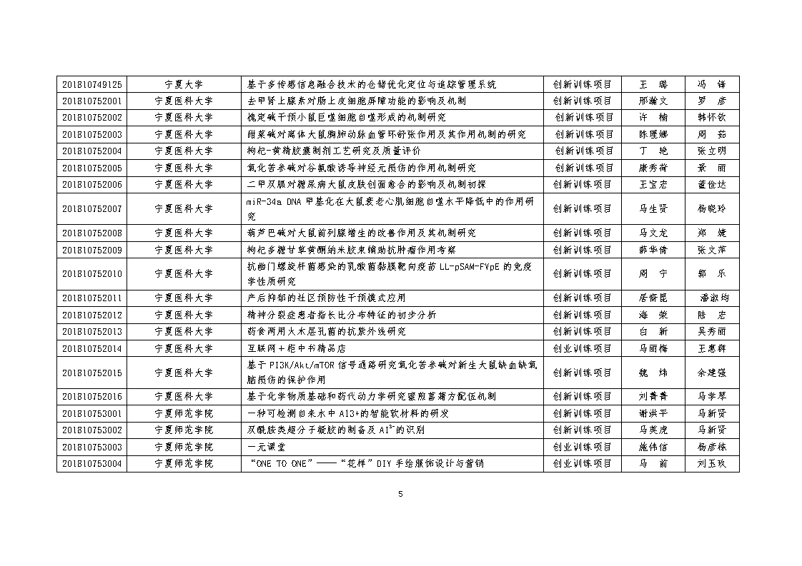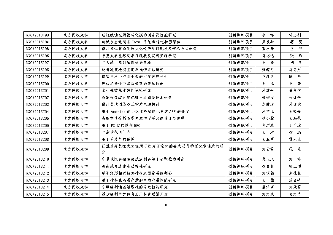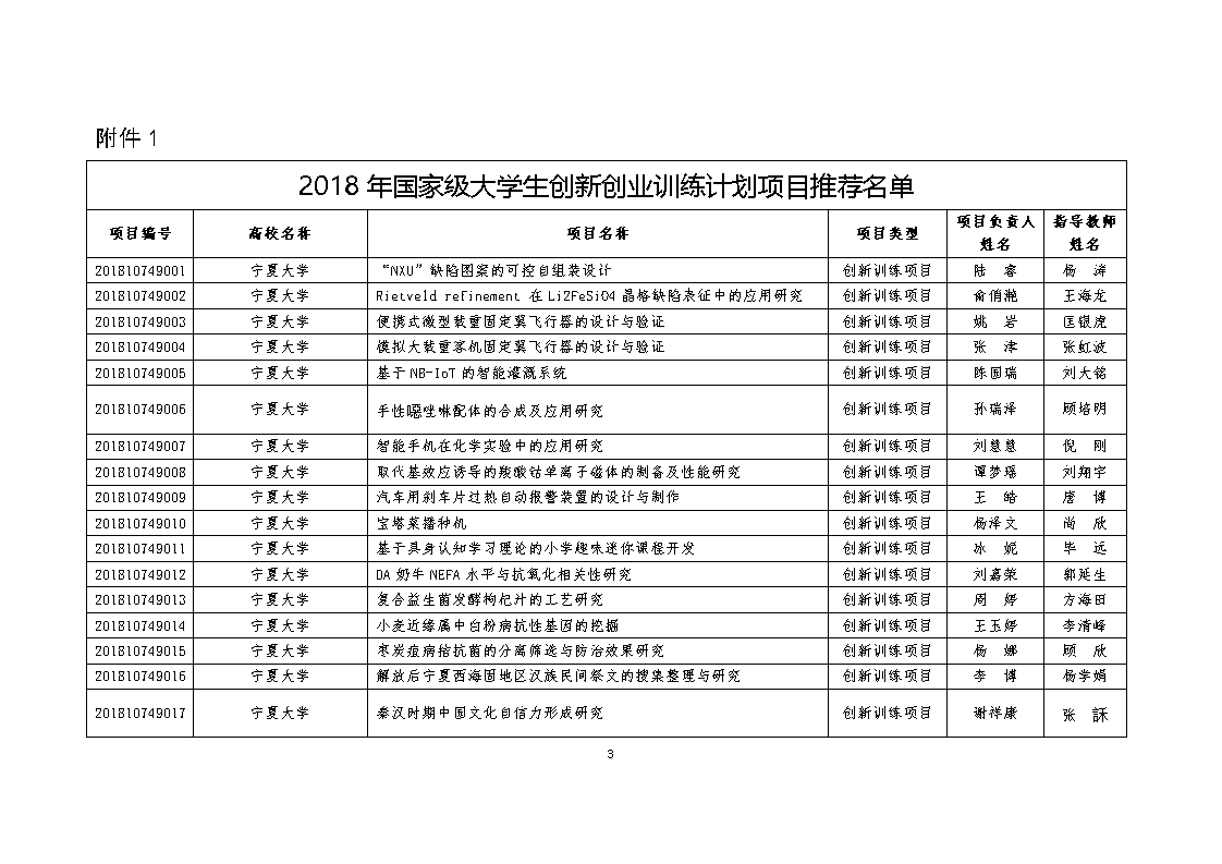 自治区教育厅办公室关于公布2018年大学生创新创业训练计划项目名单的通知