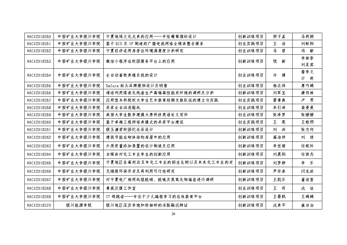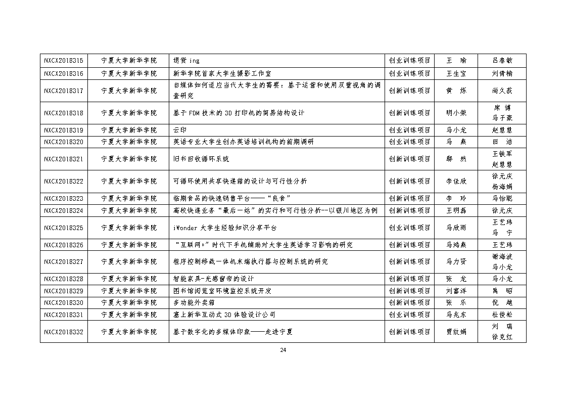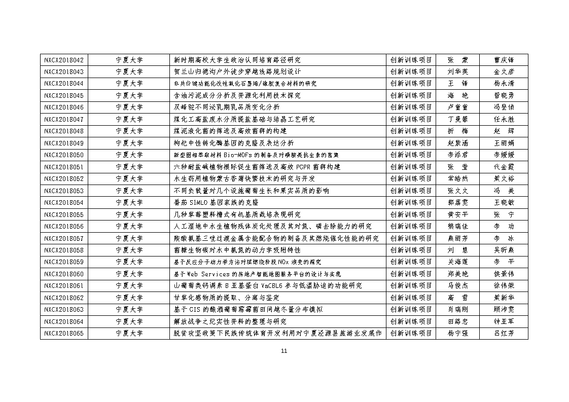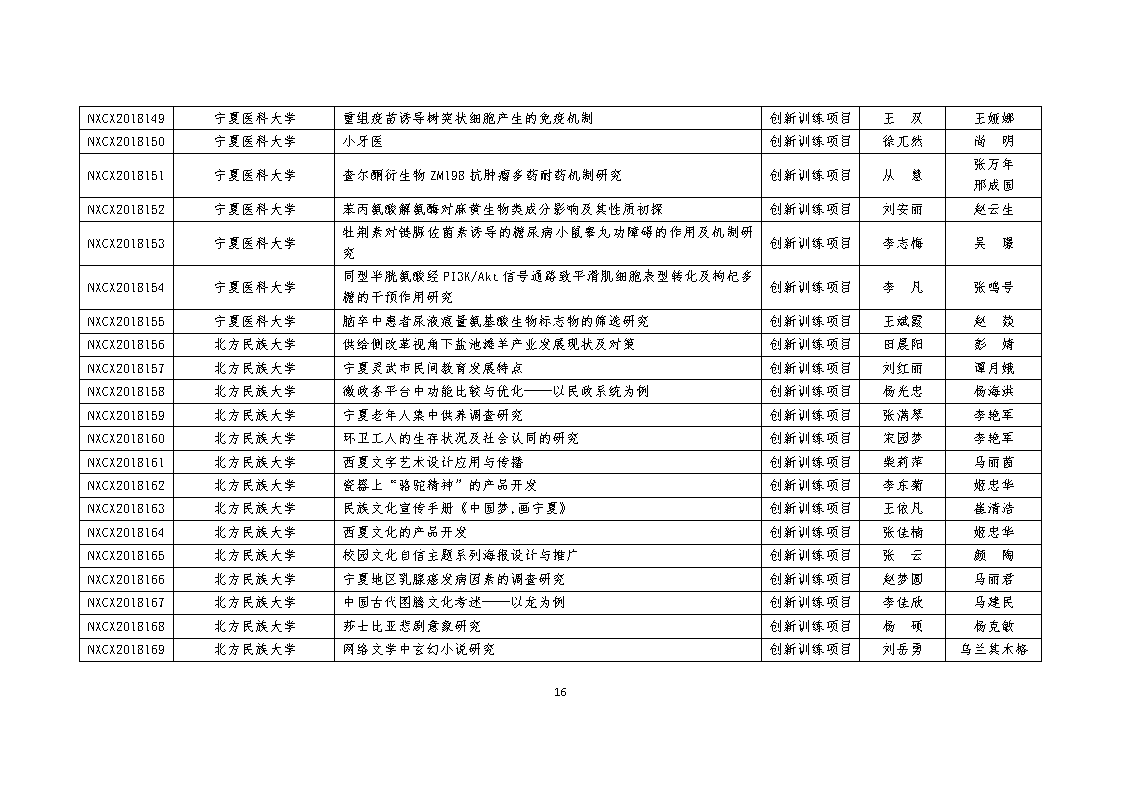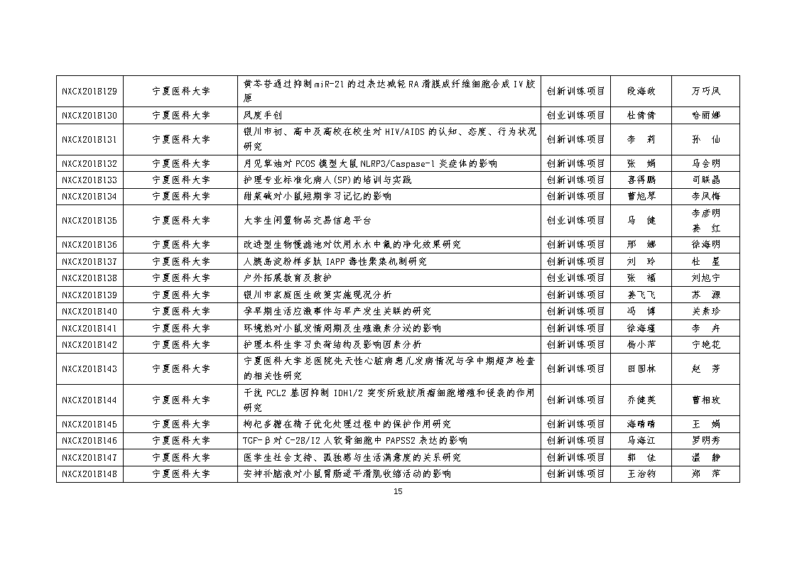 自治区教育厅办公室关于公布2018年大学生创新创业训练计划项目名单的通知
