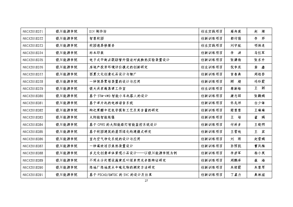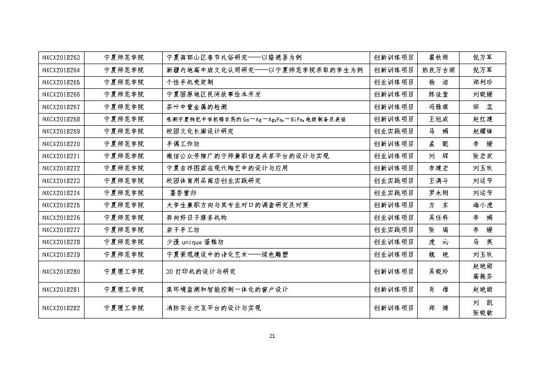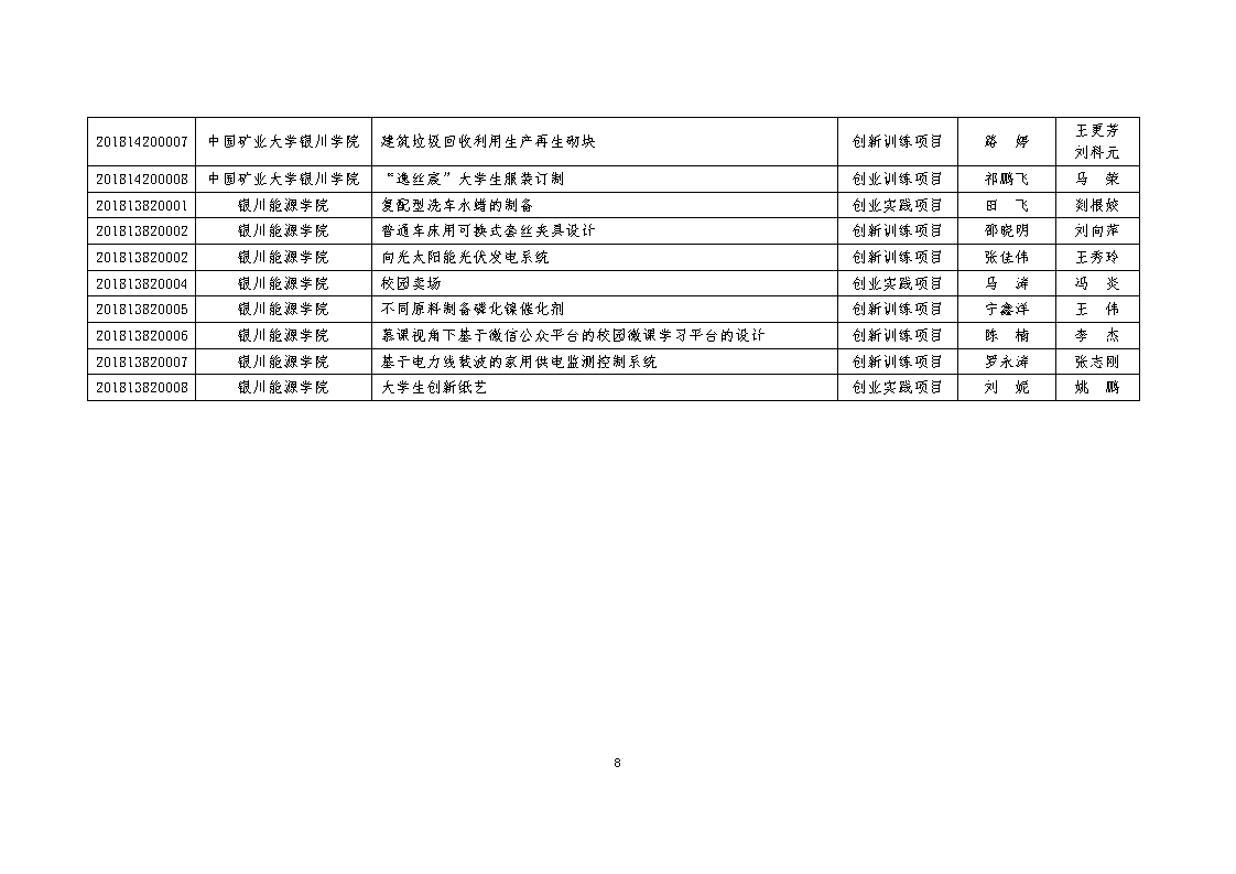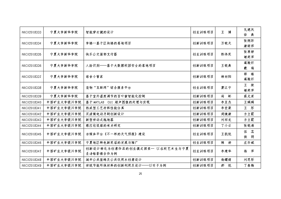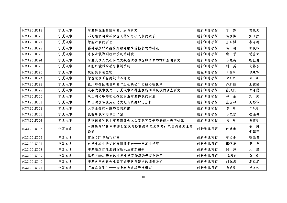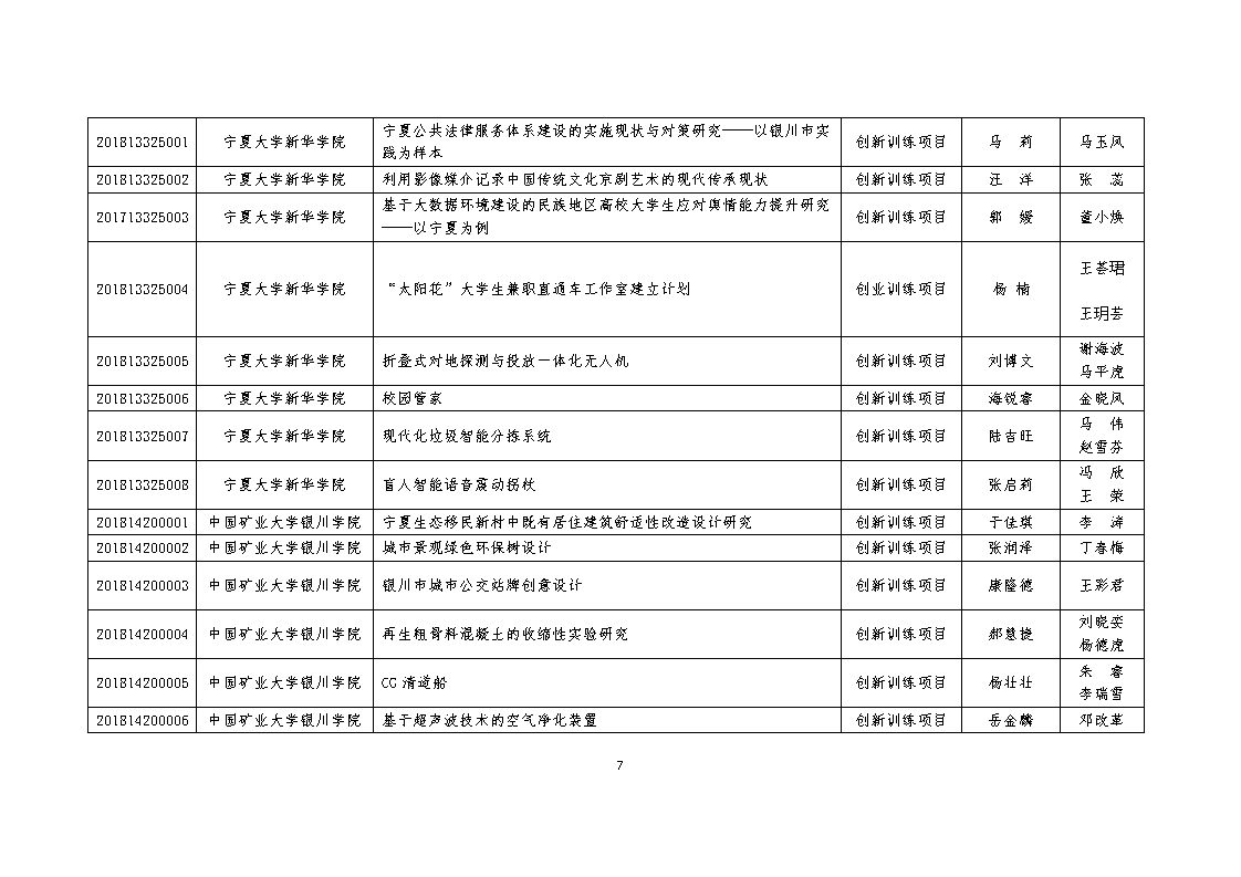 自治区教育厅办公室关于公布2018年大学生创新创业训练计划项目名单的通知