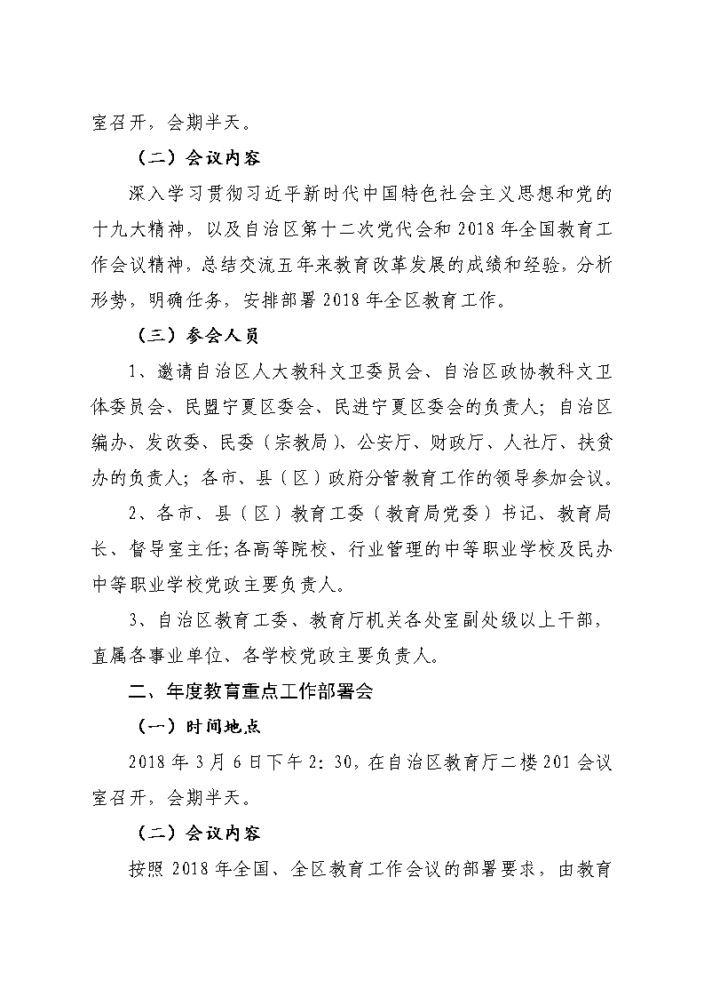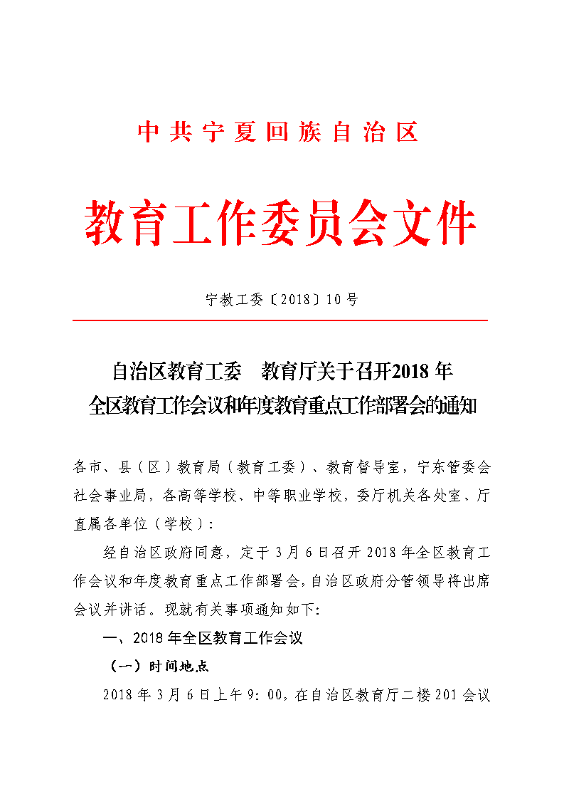 自治区教育工委 教育厅关于召开2018年全区教育工作会议和年度教育重点工作部署会的通知