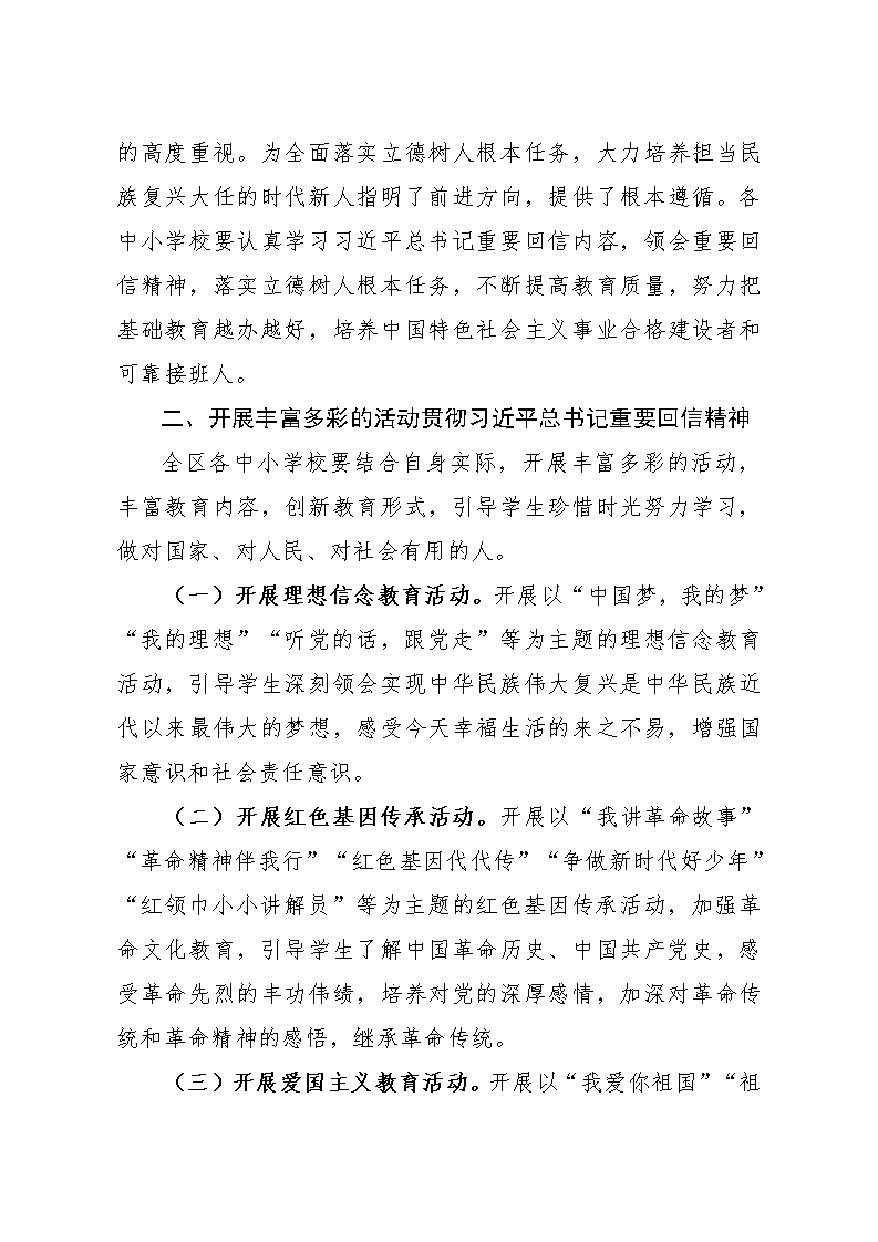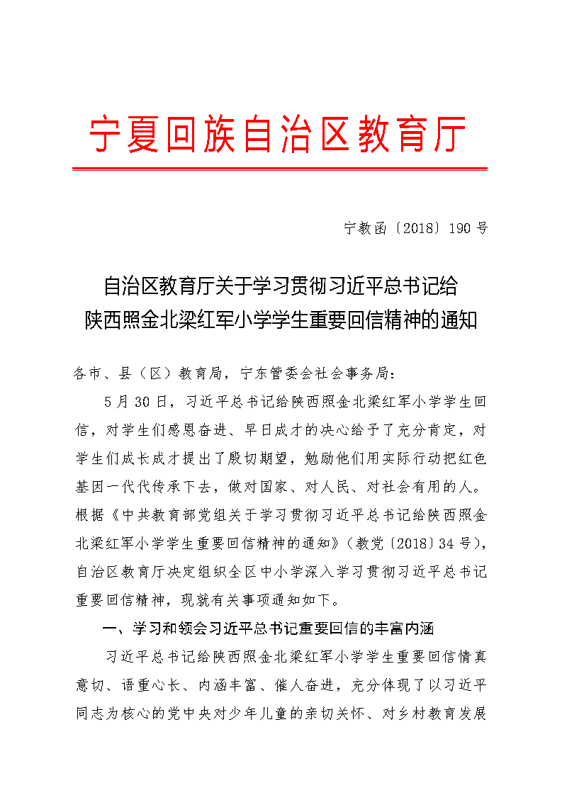 自治区教育厅关于学习贯彻习近平总书记给陕西照金北梁红军小学学生重要回信精神的通知